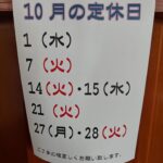 おはようございます。 本日はお休みになります。 〜10月のお休...