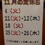 〜11月の定休日のお知らせ〜 4日(火) 11日(火) 12日...