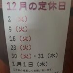 〜12月の定休日のお知らせ〜 2日(火) 9日(火) 16日(...